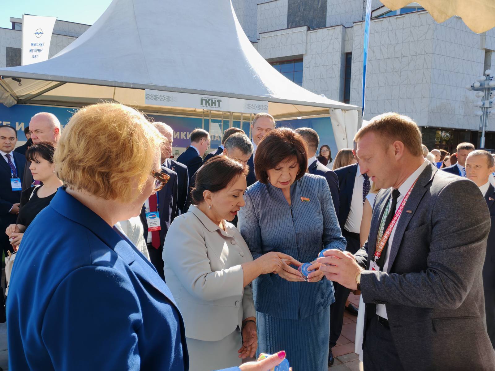 Выставочный стенд посетили делегация во главе с председателем Совета Республики Национального собрания Республики Беларусь Кочановой Натальей Ивановной и делегация во главе с председателем Сената Олий Мажилиса Республики Узбекистан Танзилой Нарбаевой.